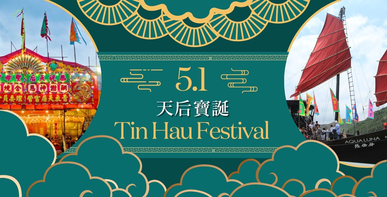香港的天后節是一年中最色彩斑斕的慶典之一。它紀念海上女神天后的生日,由於該地區與 海洋的歷史聯繫,她是城市的守護神。天后是在大廟灣的天后廟受到崇敬的神靈——節日包 括了豐富多彩、充滿喜慶氣氛、舞獅等等的活動,是香港古老文化的真實體現,也是參與其 中的一種快樂。今年,Aqualuna將從維多利亞港航行至這座歷史悠久、規模龐大的天后廟, 邀請您和家人一起參與其中,感受海上女神的庇佑和歡樂。